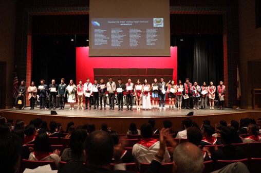 De acuerdo con el anuncio del 21 de mayo de Mary Rone Shell en la página web de RUSD y en la página de Facebook, “Durante la reunión de la Junta de Educación de esta noche, 167 estudiantes de último año de la escuela secundaria unificada en el Distrito Escolar Unificado de Redlands recibieron el sello de bilingüismo del estado de California. «Estos estudiantes obtuvieron un alto nivel de competencia para hablar, leer y escribir en uno o más idiomas además del inglés».