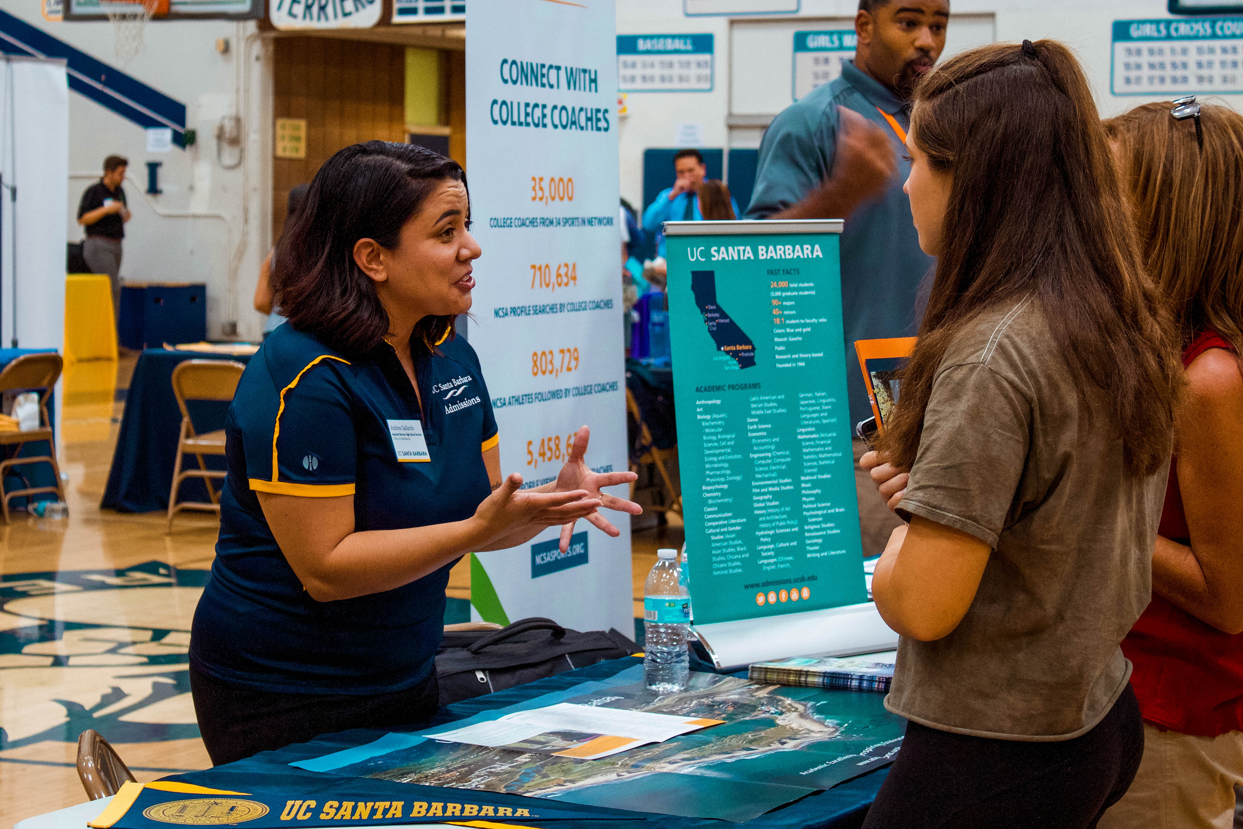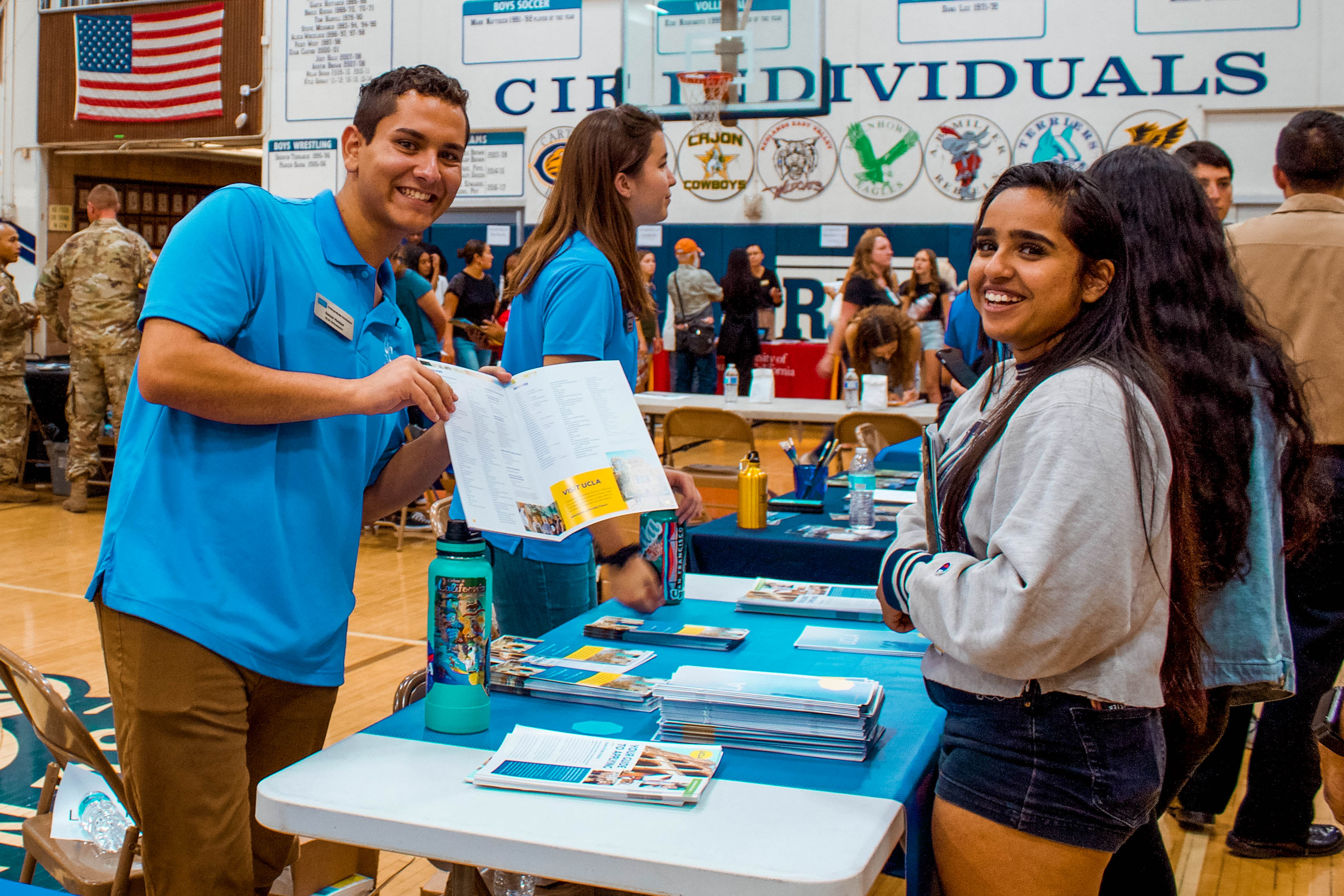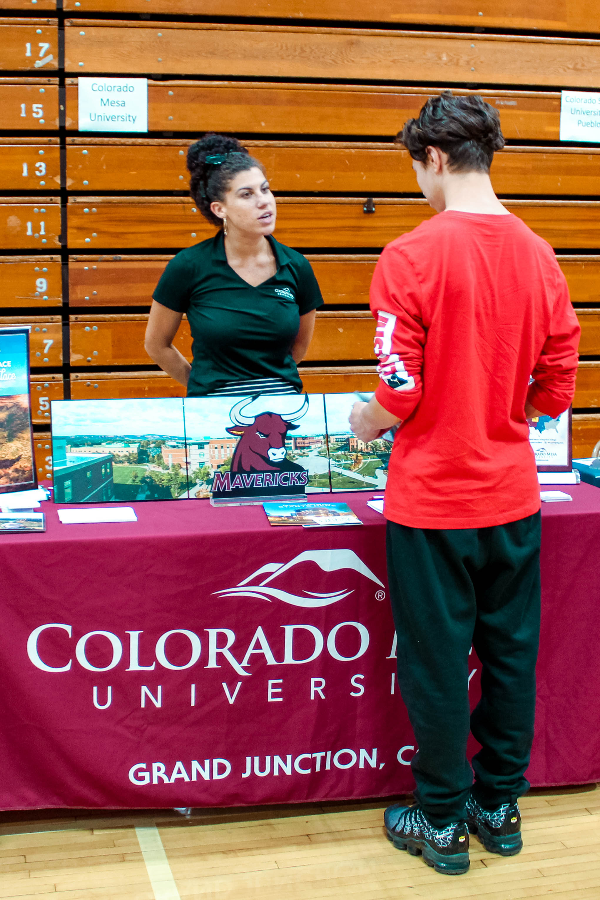 La feria del Distrito Escolar de Redlands organizó más de 25 universidades privadas, 12 campuses Cal State y UC (por sus siglas ingles) y 5 ramas de fuerzas armadas para que estudiantes exploren. (KELLY JOHNSTON/ La Plaza Fotos)