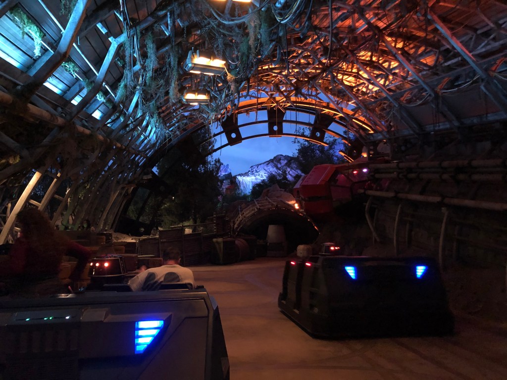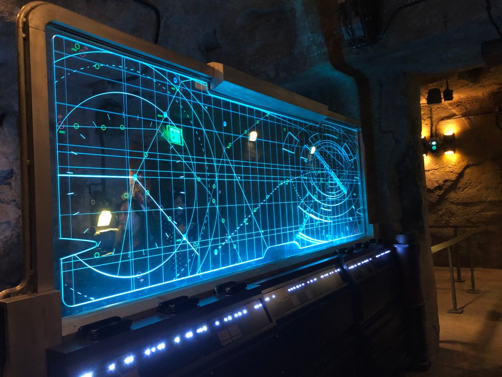 Once you make it onto the ride, you enter into an incredibly immersive experience. The queue is similar to Indiana Jones, with the winding rock cavern path. As you walk through the line, you are meant to be walking through the resistance base on Batuu. The first part of the ride is a pre-show, with a hologram of Rey instructing the “new recruits” on their mission objectives. After she provides you with your mission, you are moved to a transport ship, which works much like Star Tours does.