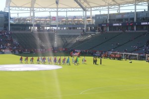 Los equipos de EEU y Costa Rica están entrando al estadio para empezar el partido. (NAYELLI BERMÚDEZ / La Plaza Foto)