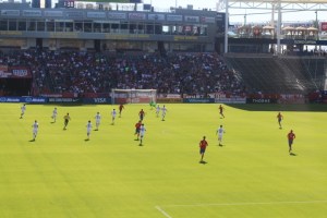 La Selección Nacional Masculina de los Estados Unidos y la Selección Nacional de Costa Rica corren hacia el poste de Sean Johnson mientras los ticos intentan meter su primer gol. (NAYELLI BERMÚDEZ / La Plaza Foto)