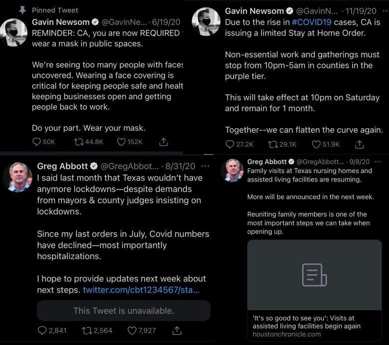 As mentioned earlier, all state governors handled the situation differently, and states with opposing views of California, such as Texas, have less rules to follow.