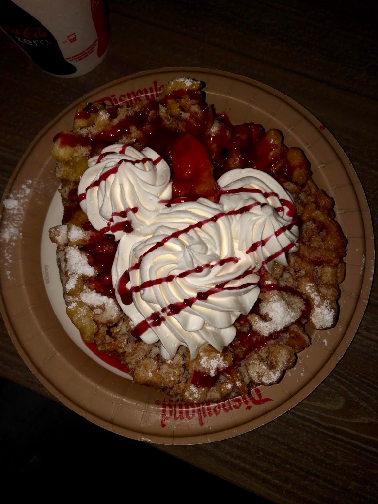A funnel cake pictured from Stage Door Cafe in Disneyland on Sep. 10, 2018. Stage Door Cafe, a fast-food outpost located in Frontierland, has a small variety of funnel cakes to choose from for dessert. (DESTINY RAMOS MARIN/ La Plaza photo)