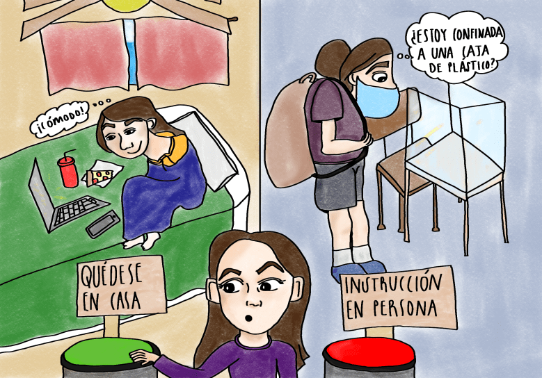 Read this in English here: https://laplaza.press/2021/04/06/editorial-cartoon-return-back-to-school/