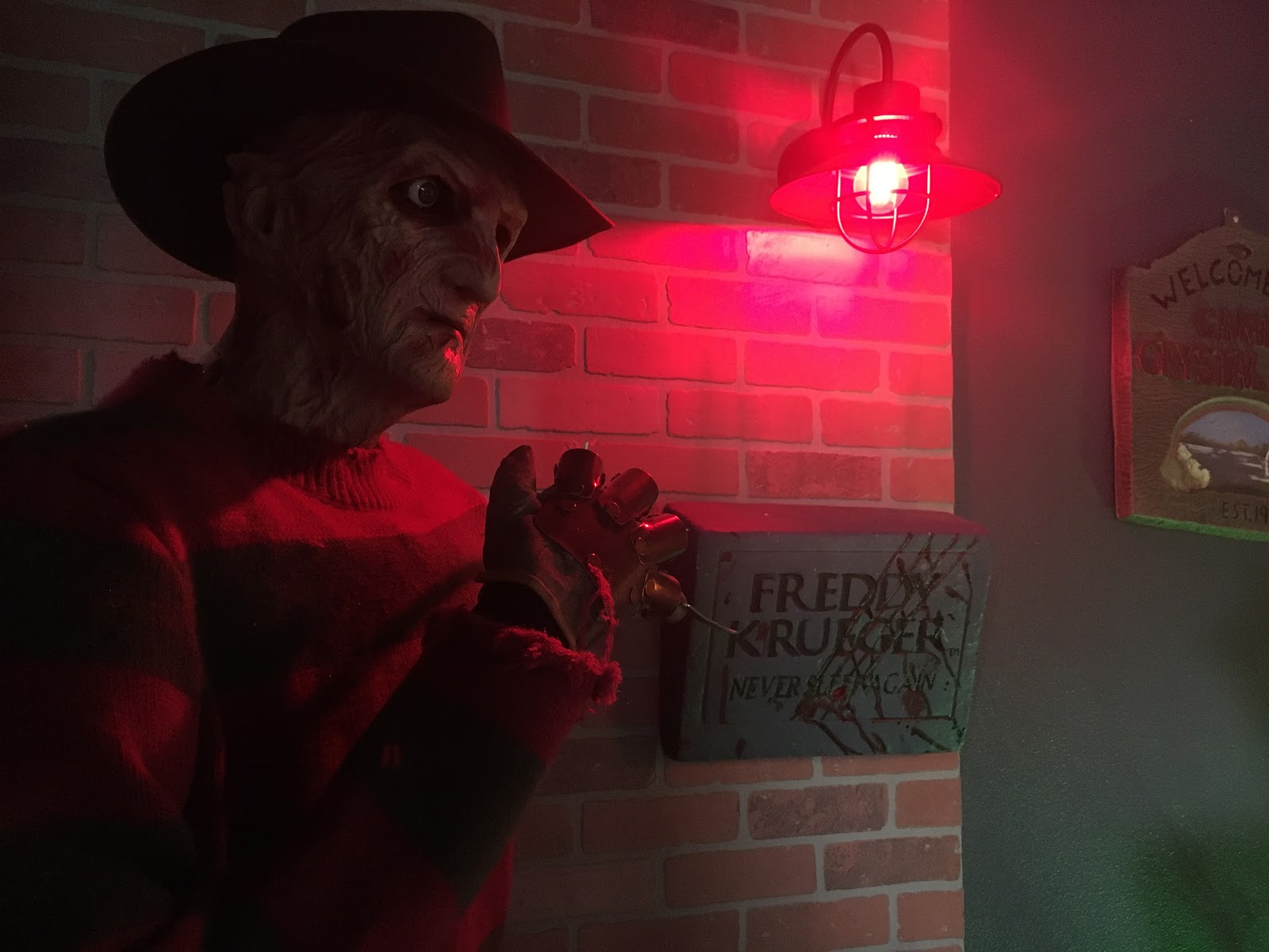 Las estatuas de tamaño natural de los conocidos personajes de terror Micheal Myers, Freddie Kruger y Jason Vorhees se encuentran en el lado derecho de la tienda, observando constantemente a los asistentes disfrutar de sus bebidas. (DESTINY RAMOS MARIN/ foto de La Plaza)