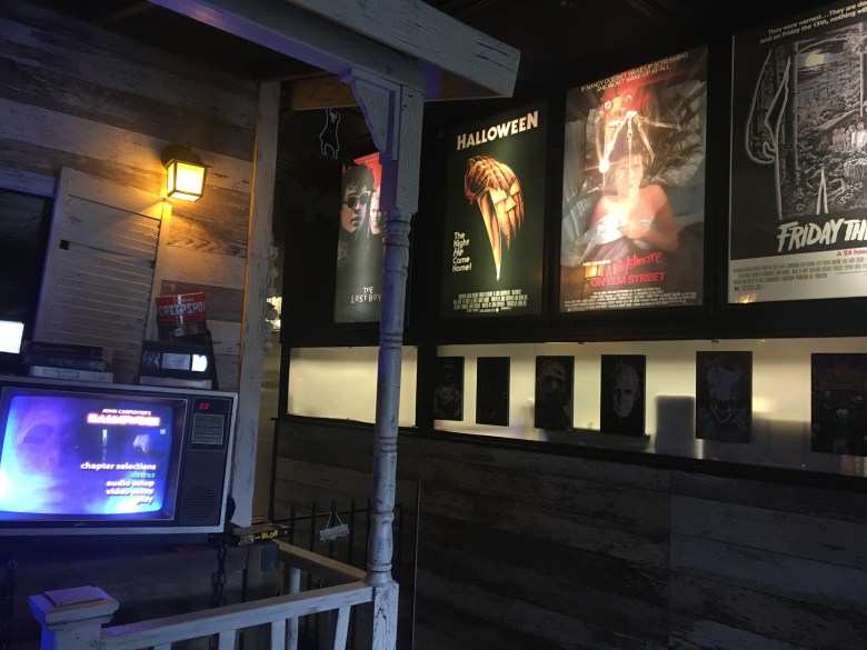 En la esquina de la tienda, carteles de las películas clásicas «Los chicos perdidos» (1987), «Halloween» (1978), «La pesadilla en Elm Street» (1984), «Viernes 13» (1980) y «Asesino Klowns from Outer Space «(1988) están acompañados de fotos más pequeñas de los personajes de películas de terror clásicas Anabelle de la serie de películas» Annabelle «, Leatherface de la serie de películas» The Texas Chainsaw Massacre «, Pinhead de la franquicia» Hellraiser «y Pennywise de 2017 de las películas «It». (DESTINY RAMOS MARIN/ foto de La Plaza)