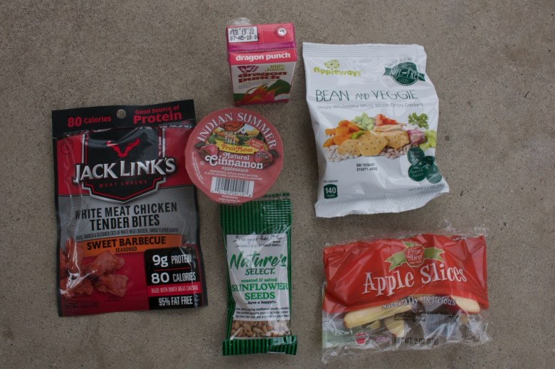 Este almuerzo envasado consta de un total de cinco artículos: un paquete de bocaditos tiernos de pollo de Jack Links, semillas de girasol, puré de manzana, frijoles y galletas de vegetales y un ponche de dragón. Además, los estudiantes tienen la opción de tomar leche adicional, rodajas de manzana y puré de manzana que no están incluidos en el saco empaquetado. (ISAAC MEJIA / foto de La Plaza)