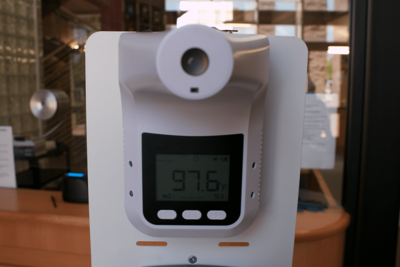 La oficina contiene una entrada protectora secundaria que permite a las personas tomarse la temperatura antes de ingresar al campus. Después de tomar las medidas de precaución, la persona en la recepción abrirá la puerta: de lo contrario, la puerta permanecerá cerrada; sin embargo, no se requiere nada para entrar por la primera entrada. (ISAAC MEJIA / Foto de La Plaza)