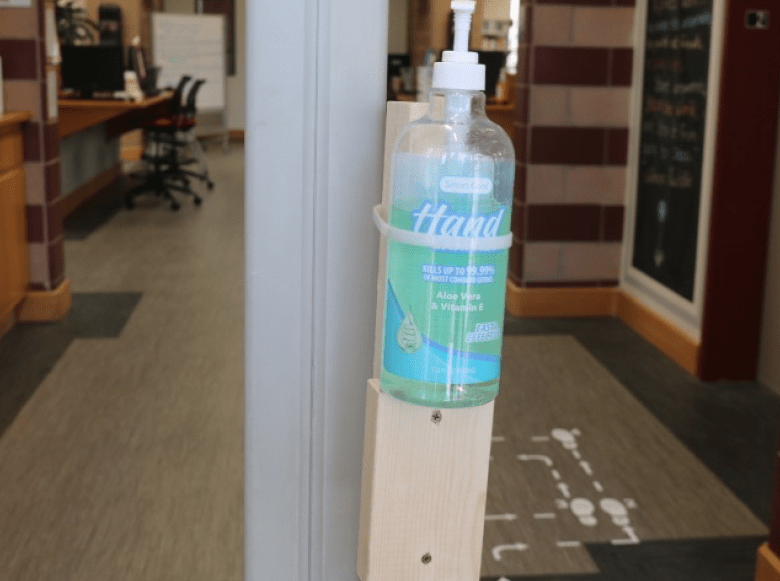 As students enter the library, they are met with a bottle of hand sanitizer to help maintain personal cleanliness. This small addition can be seen in different locations throughout the school and is specific to the current school year. (ISAAC MEJIA/ La Plaza photo)