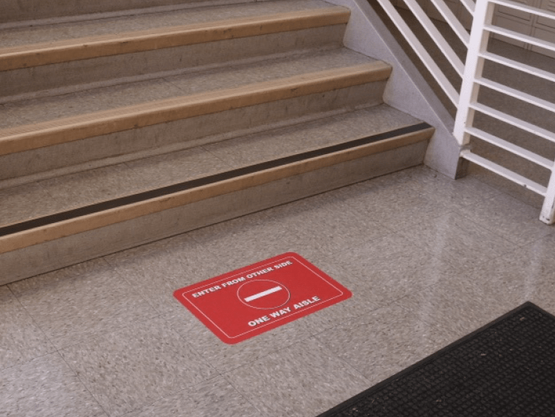 Of the two sets of staircases in each building, only one staircase will be accessible to walk up, while the other will be used to walk down. This specific measure has forced students to take different detours to their next class. (ALISSON BERMUDEZ/ La Plaza photo)