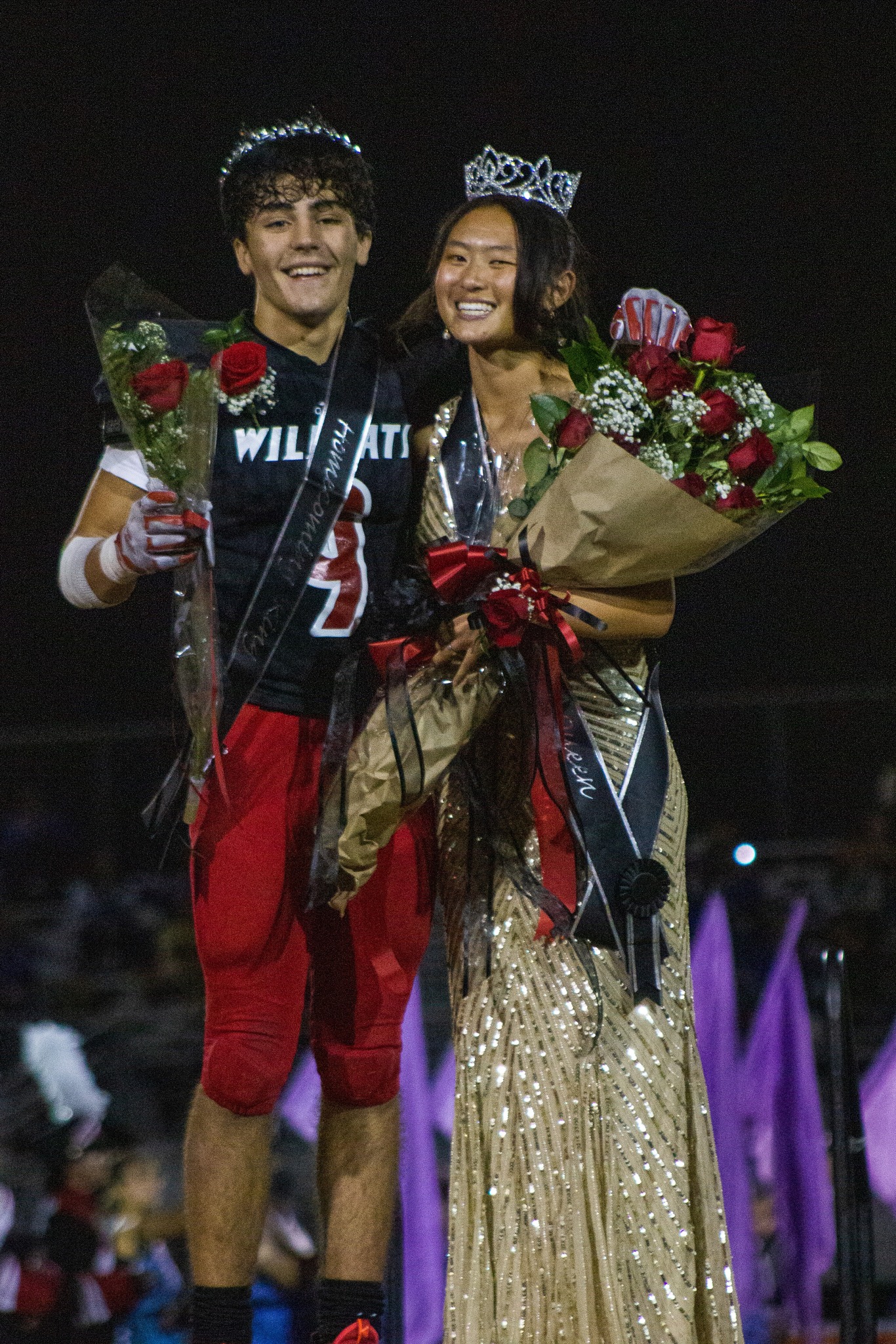 Kadin Khalloufi y Shannon Cockerill, estudiantes del último año de Redlands East Valley High School, son coronados como reyes de Homecoming el 1 de octubre. Khalloufi y Cockerill participaron en actividades de Homecoming con Khalloufi como capitán de fútbol y Cockerill como presidente ejecutivo del Cuerpo Estudiantil Asociado. (MIA ARANDA/ foto de Ethic News)