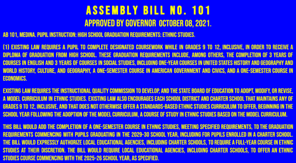 AB 101 hará de California el primer estado en requerir Estudios Étnicos como requisito de graduación octubre 28, 2021 0